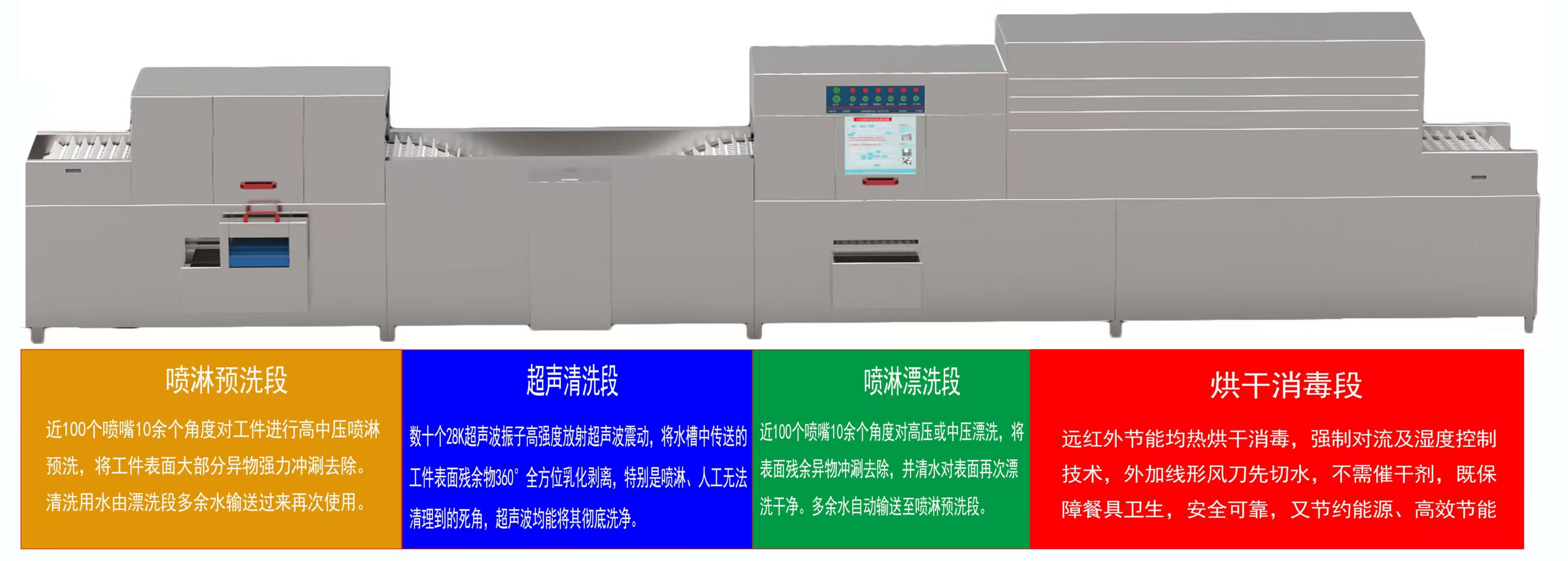 上超全自動超聲波洗碗機(jī):學(xué)校飯?zhí)酶咝н\作與健 一、高效清洗,節(jié)省人力?學(xué)校飯?zhí)糜貌腿藬?shù)集中且數(shù)量龐大,每餐結(jié)束后堆積如山